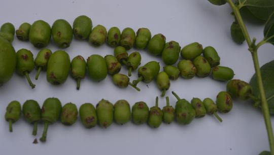 發病后期,棗吊發病部位失水,有的棗吊則出現斷裂,花蕾脫落。發生嚴重時花蕾較少甚至形不成花蕾,座果率顯著降低,甚至座不住果子。后期則棗吊干枯,棗吊上坐住的果實,由于營養不良,品質受到很大影響.