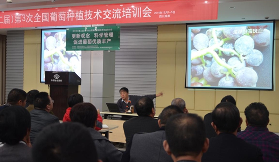 2014年12月1日—5日,由中國農學會葡萄分會、中國果品流通協會葡萄分會主辦,中國農藥發展與應用協會植物生長調節劑專業委員會、國光承辦的2014年(第二屆)第三次全國葡萄種植技術交流培訓會在國光召開,來自安徽、湖北、四川、山西、江蘇等地的200余名葡萄種植戶參加了會議。