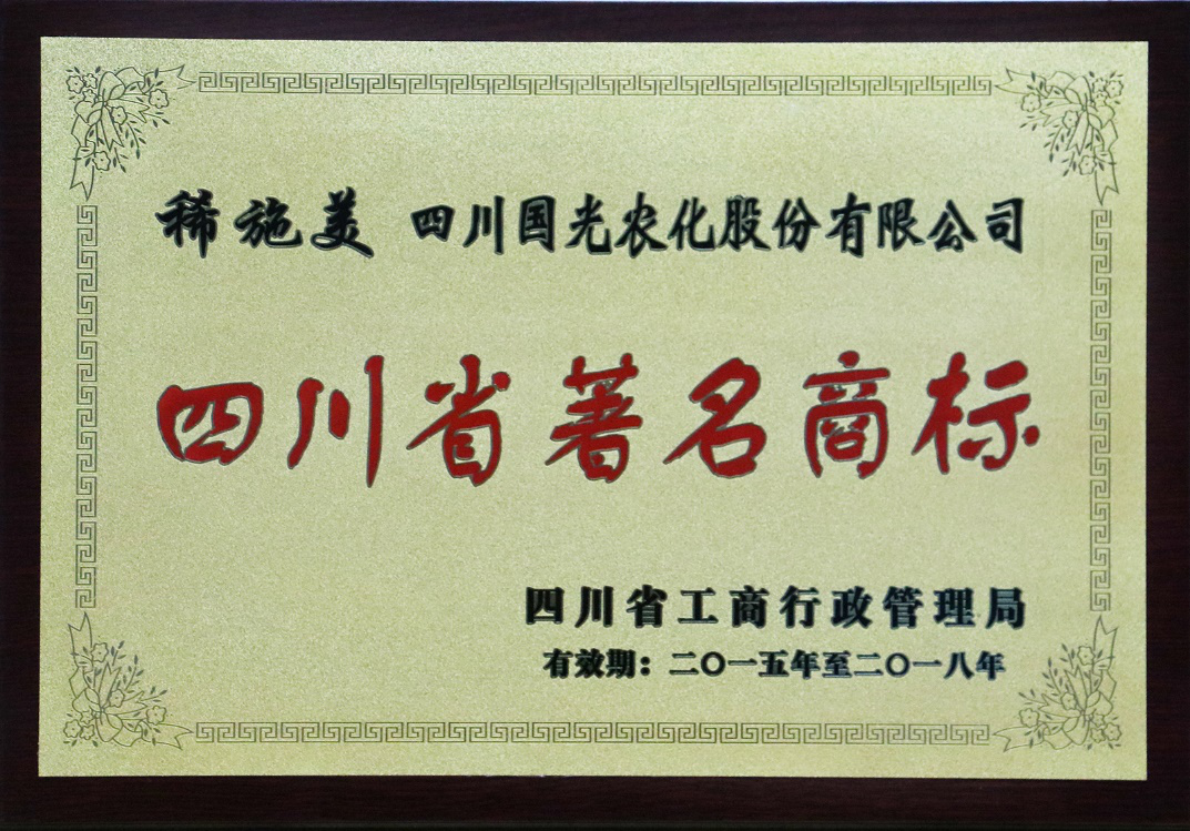 “稀施美”商標是繼“國光”、“矮豐”兩件“著名商標”之后我公司獲得的第三件四川省“著名商標”。